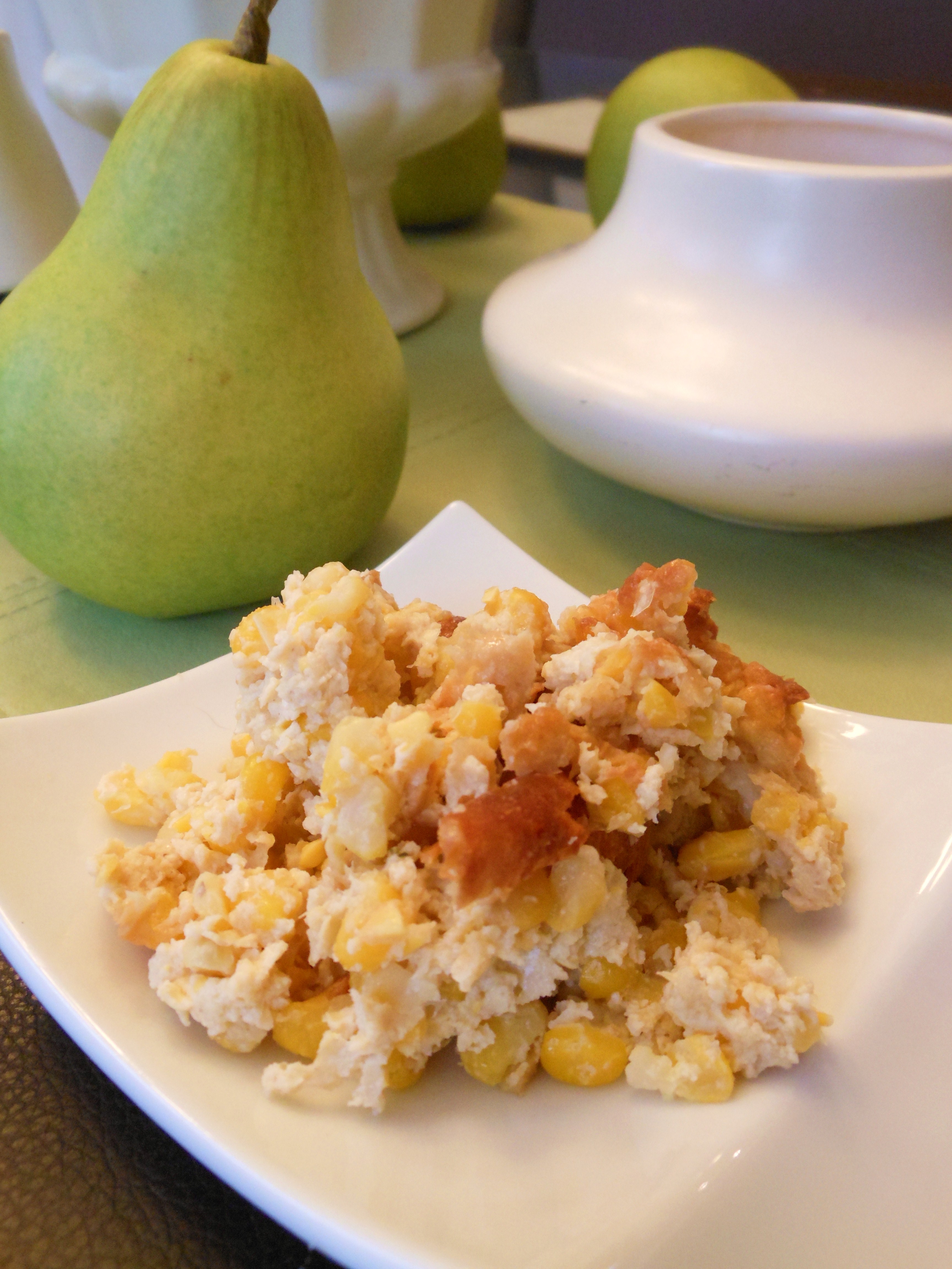 If fluffy, buttery biscuits, moist cornbread, and creamy spoonbread had a lovechild, this would be it. It is delicious eaten with a spoon straight out of the dish standing at the counter as soon as it emerges from the oven. Or, if you are more civilized, it is a comforting side dish for a barbecue, a potluck, or a Thanksgiving meal.