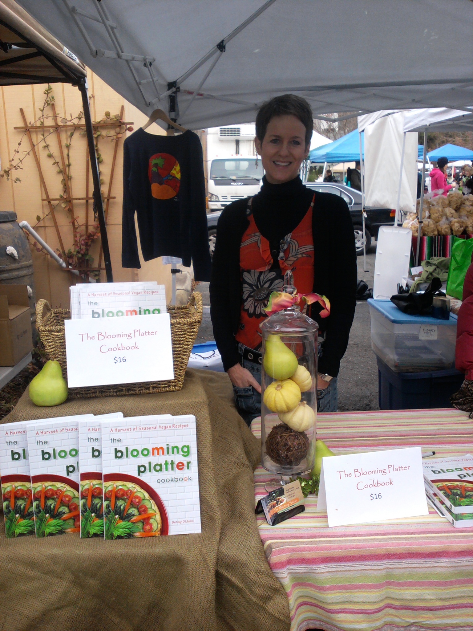 Many thanks to the generous organizers and patrons of the Old Beach Farmers Market “Christmas Market” on December 15 at Croc’s Eco-Bistro in VA Beach. What a convivial and festive community event! I was honored to be invited to be a part, and gratified to have sold out of my Blooming Platter Cookbooks by 10:30 a.m (the market closed at noon)!