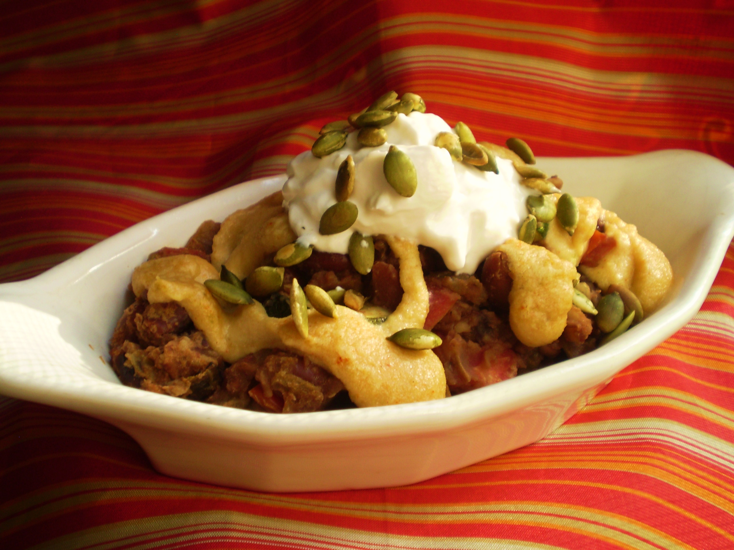 I’m fairly sure it would be impossible to find a bad meal in San Miguel, and that includes from the street vendors. (I wish the corn ice cream sold from a truck at the “Jardin” was vegan!) In particular, be sure to visit Cafe Rama, the subject of an upcoming post. However, it was the green chile sauce at El Pegaso, one of Don and Federico’s favorite restaurants, on my “custom” refried bean enchiladas that reminded me of the tofu Migas with Green Tomato-Chile Sauce in my cookbook.