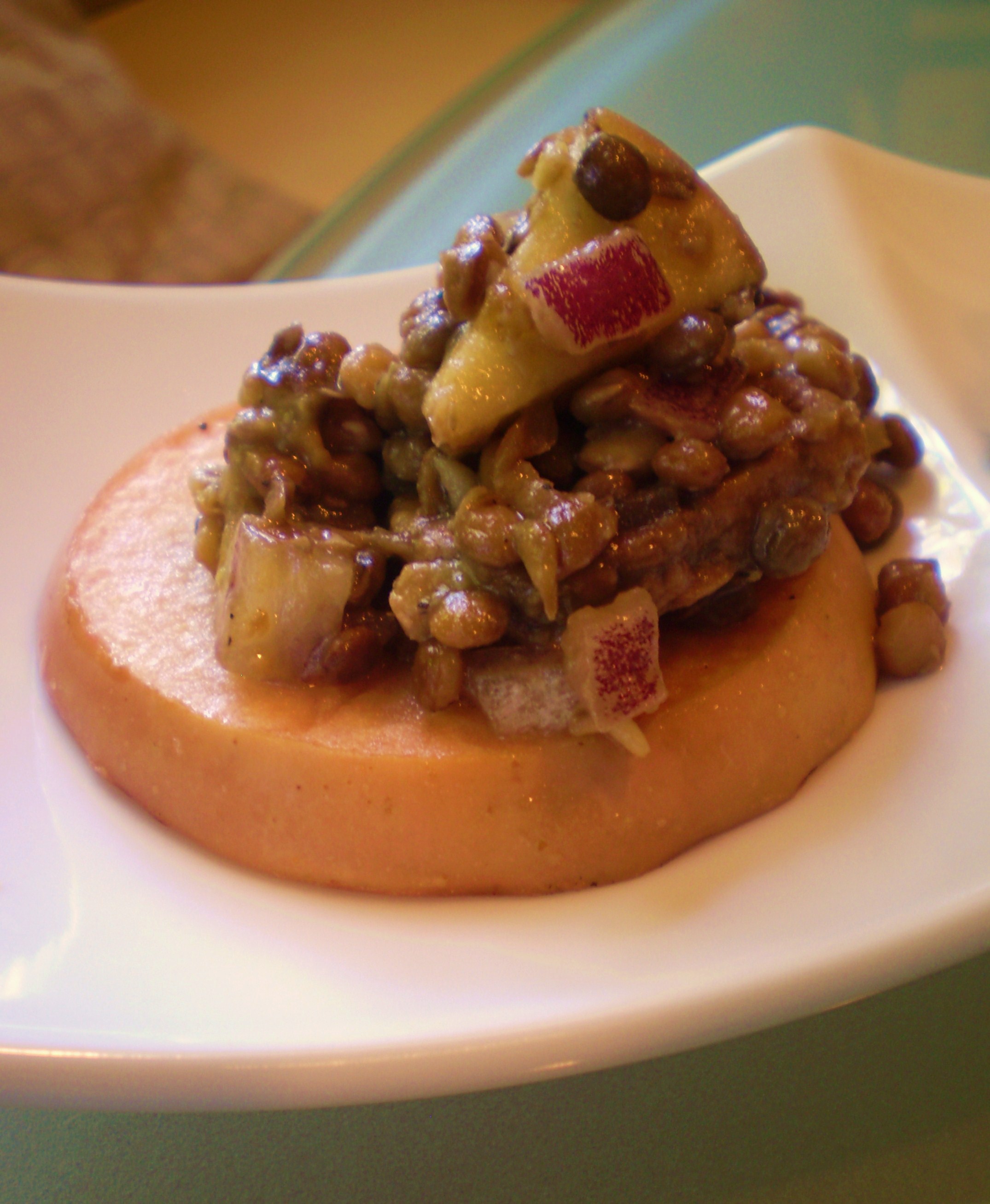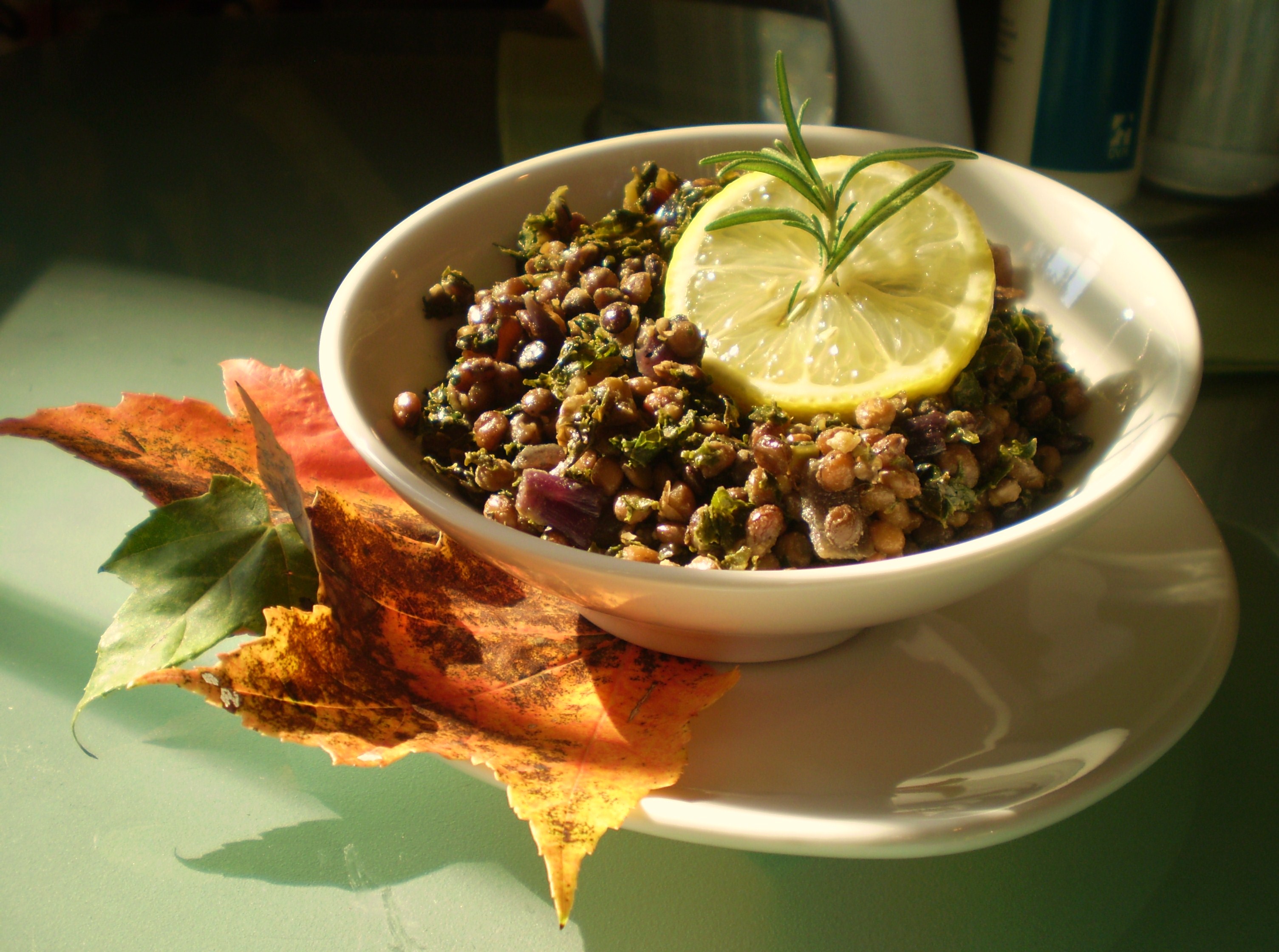 Note that the recipe calls for starting with dried lentils, but I often just buy a 17.6 ounce package of Trader Joe’s steamed lentils, sold in their produce section, and use the whole package.