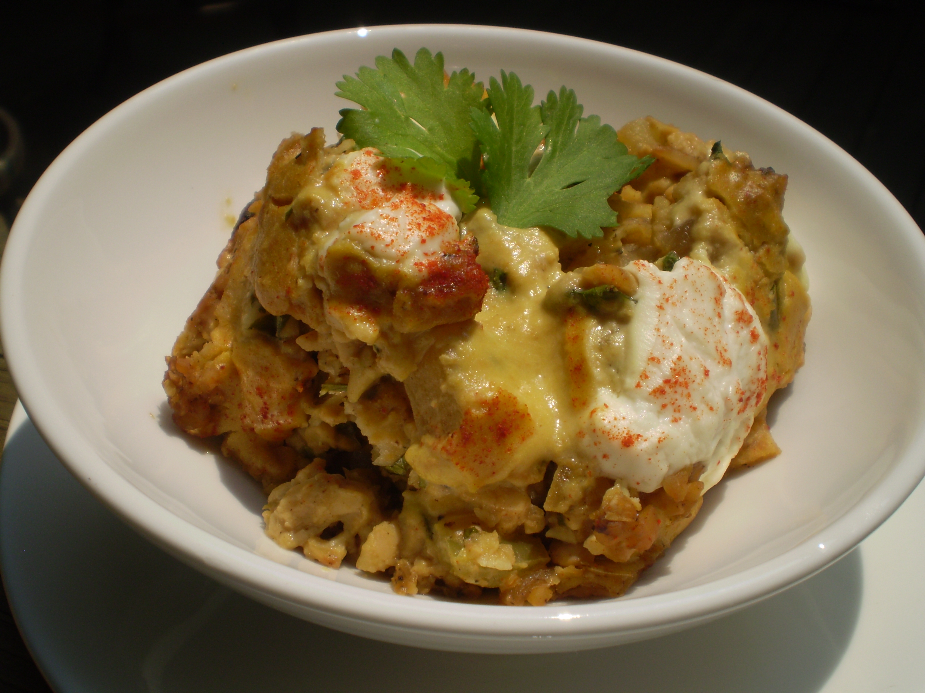 *Note: the first time I made this dish, I only had a half a bag of chips, so I combined 3 ounces chips with the same amount of panko bread crumbs, sprinkled the mixture over the casserole, and sprayed lightly with non-stick spray before baking. It is delicious with either topping.