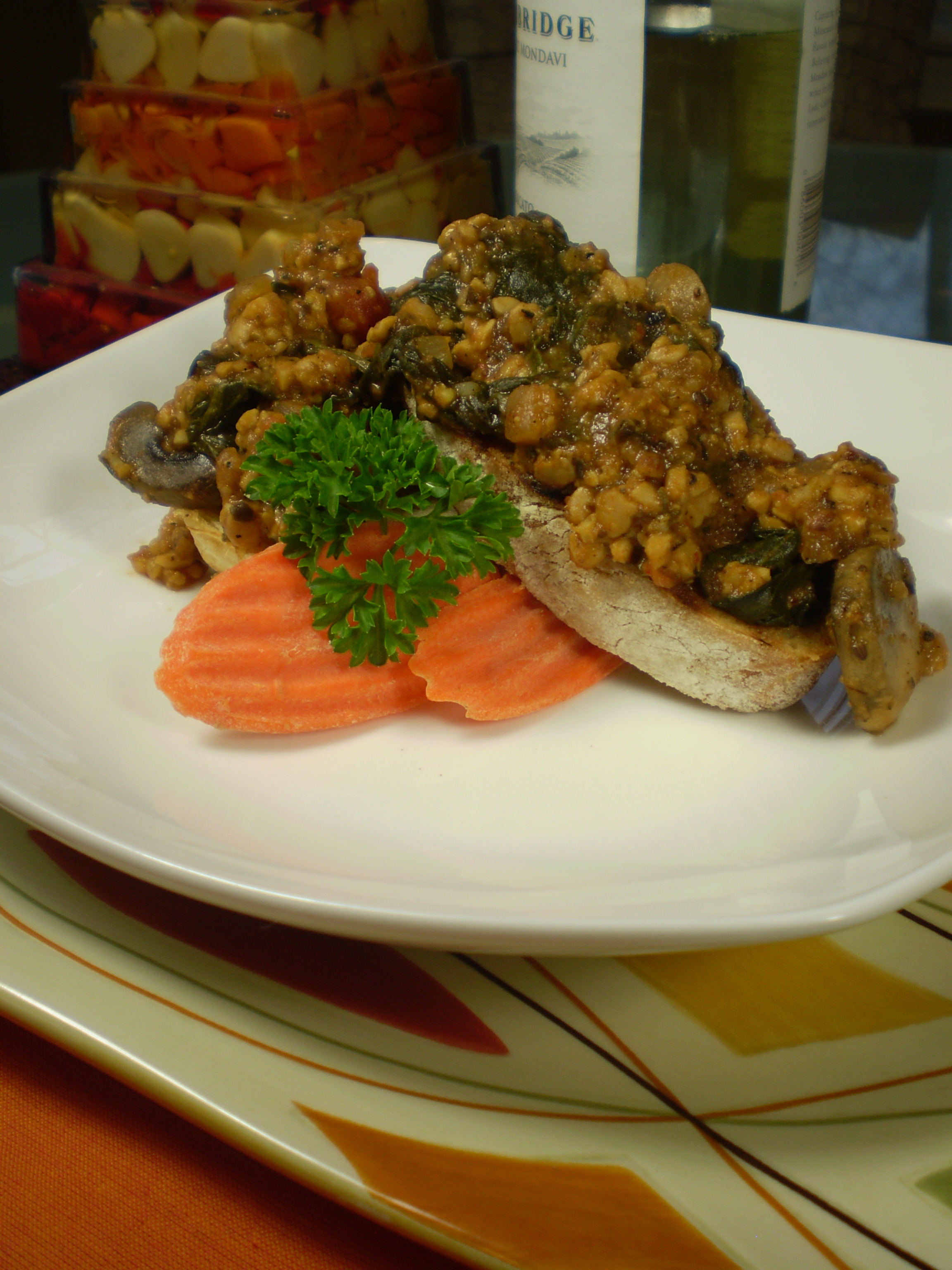 Preheat oven to 350 degrees. Oil a large casserole dish. Heat 1 tablespoon olive oil in a large cast iron skillet over medium-high. Add onion, celery, and a pinch of salt. Saute, stirring frequently, for about 3 minutes or until beginning to soften. Add tempeh and saute about 3 minutes more. Add kale and cook, lowering heat if necessary and stirring fairly frequently, until tempeh is softened and partially wilted, about 3 to 5 minutes more. Transfer to a large bowl. Add pumpkin and mushrooms, and toss gently to combine. In a small bowl, fold together sour cream, mayonnaise, flour, pimentos, multi-purpose seasoning, sage, and pepper. Spoon over vegetables and tempeh mixture, gently fold together until well-combined, check for seasoning and add more salt and pepper to taste. Lightly mound into into casserole dish. Sprinkle evenly with crushed sweet potato chips, and bake, uncovered, for 30 minutes, covering if edges begin to brown too quickly. Allow to cool at least 10-15 minutes before serving.