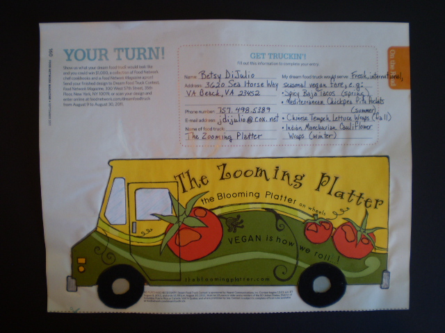 *honk*honk* What a great idea! I agree with you about the Food Network for the most part. I did enjoy watching the Seabirds truck on Food Network’s, “The Great Food Truck Race”: three girls serving up delicious-looking vegan fare from a truck. They made it half way through the season, too!