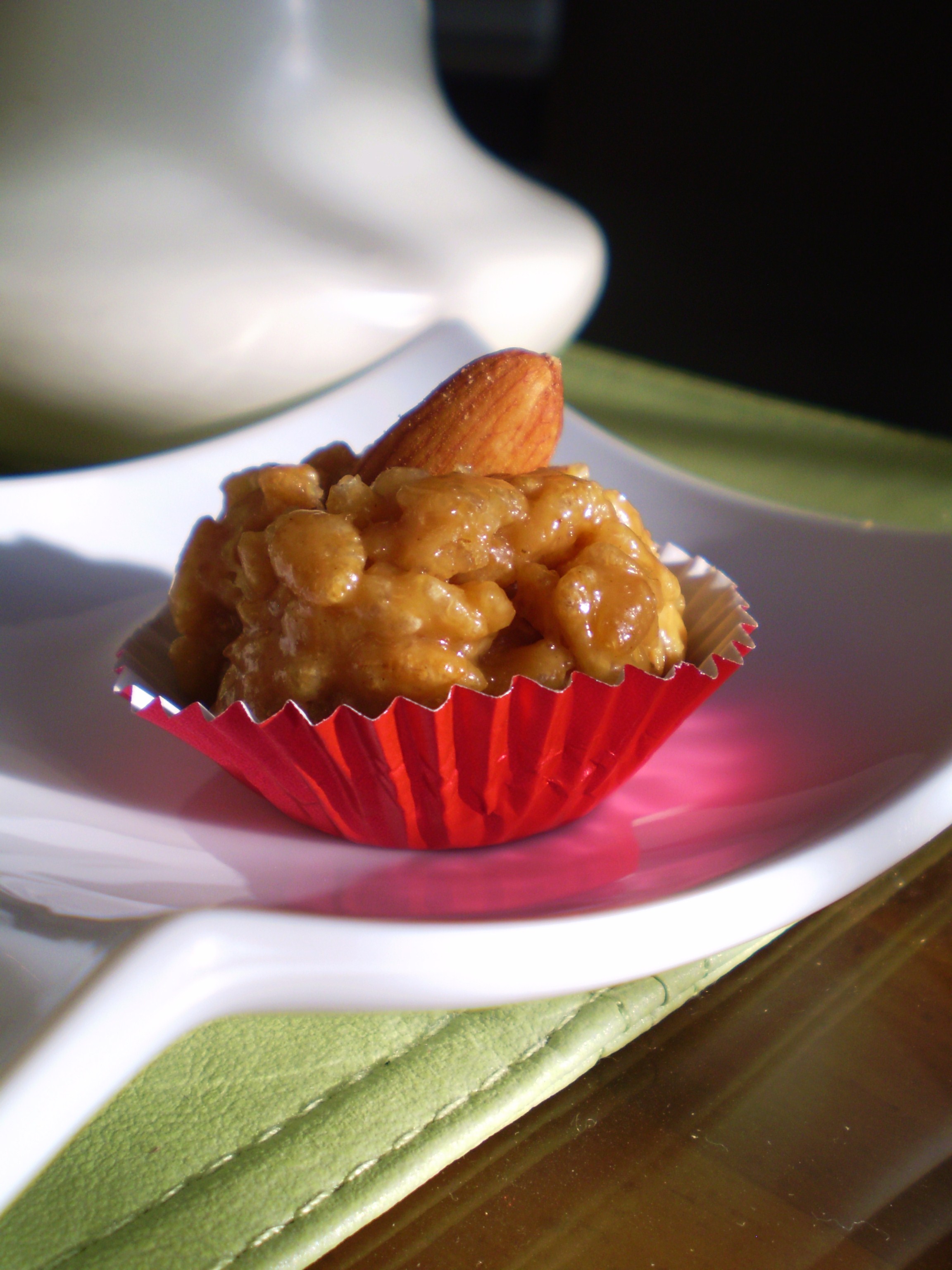First, before the recipe, the cereal “review”: I loved Erewhon Crispy Brown Rice Cereal. It is almost identical to Rice Krispies, but it is made with the whole grains of organic brown rice. And I found Erewhon’s particular crunch to be pleasantly dense, not as light and airy as the Kellogg version. Erewhon is vegan, of course, gluten free, all organic, kosher, low fat, very lightly sweetened with brown rice syrup, and contains no artificial anything. You can buy it at