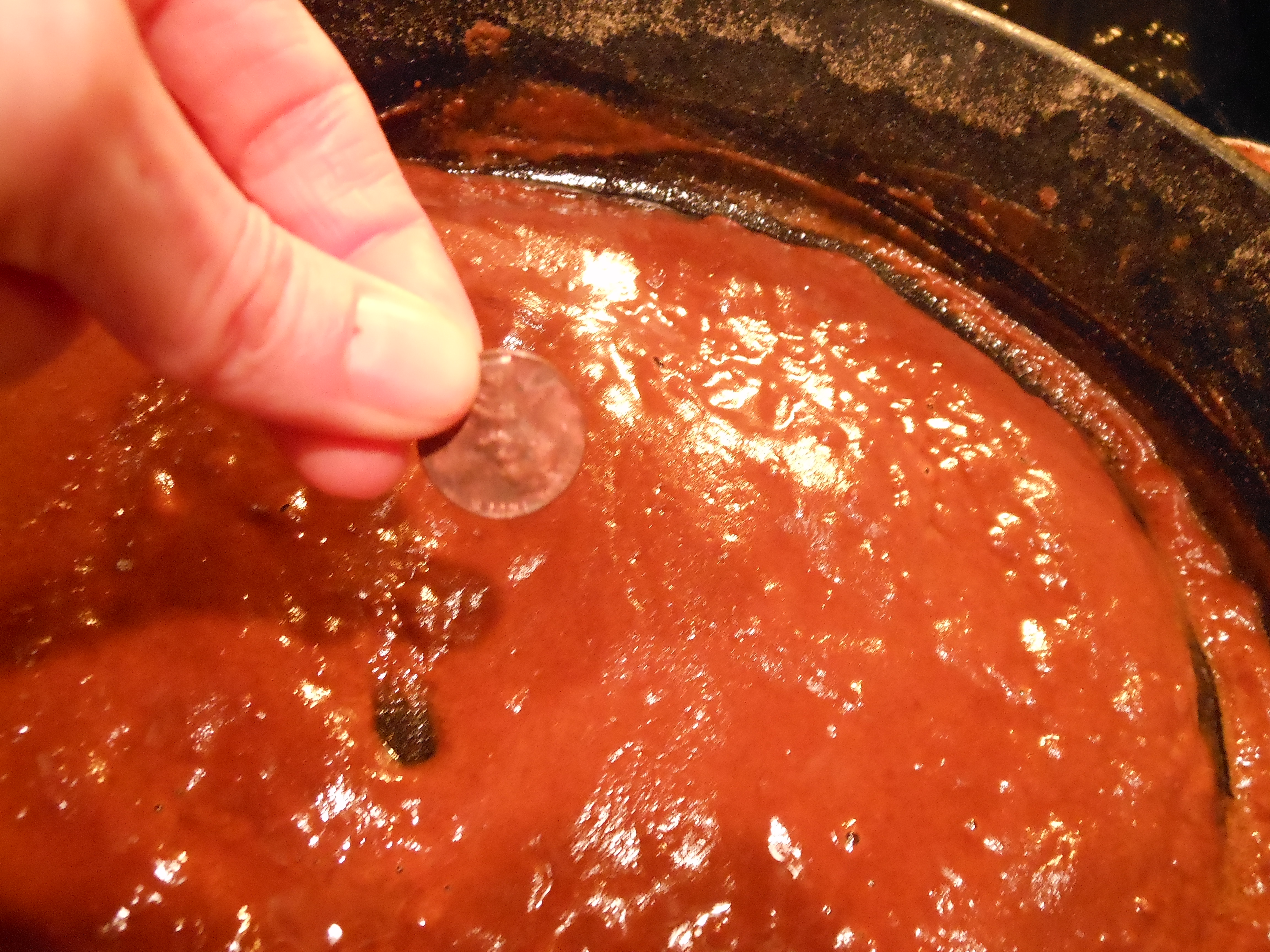 (It looks red in this photo which was taken at night on the stove with no natural light, but it was the color of melted chocolate.)